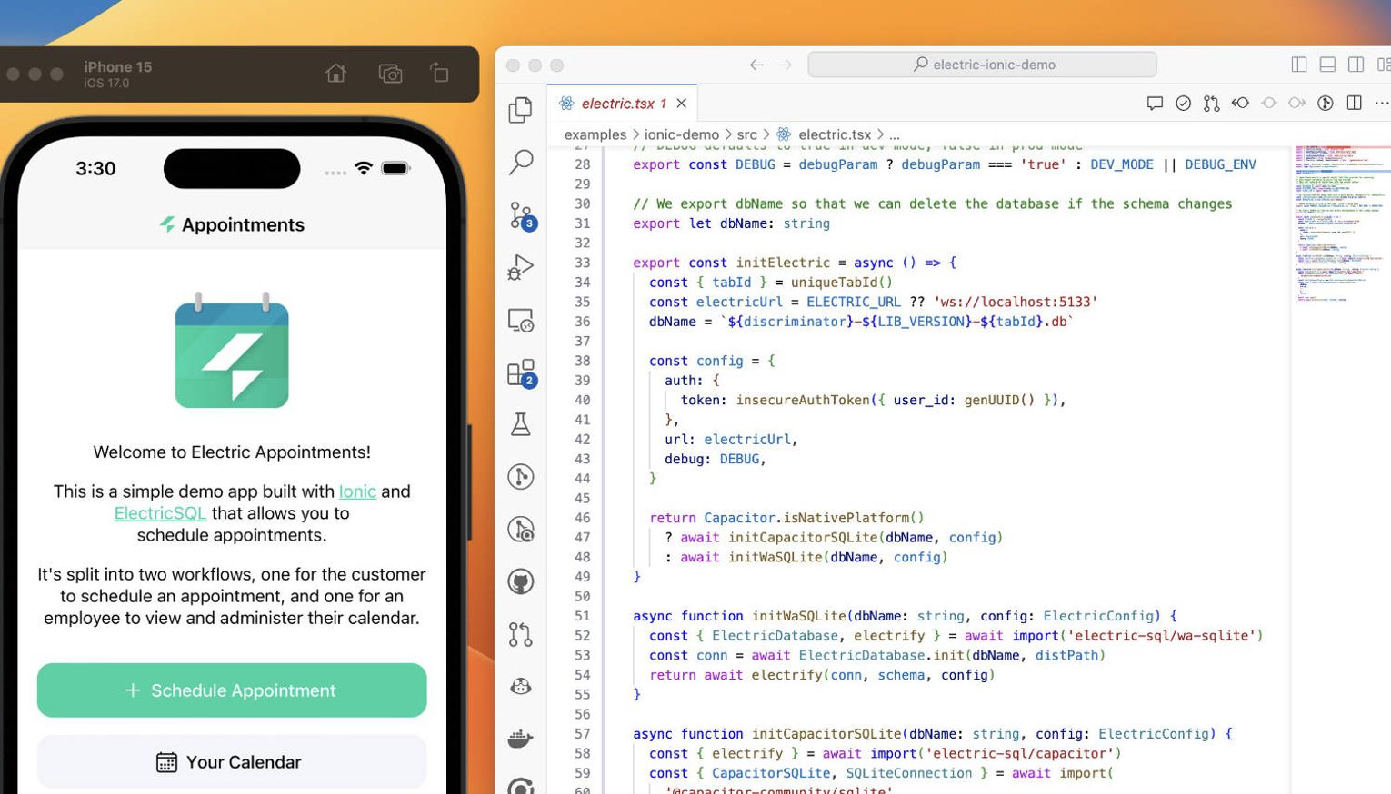 The pairing of ElectricSQL with the Ionic Framework and Capacitor is a compelling route for rapid application development. It results in a single codebase for web, iOS and Android apps, along with full offline and collaborative real-time support.