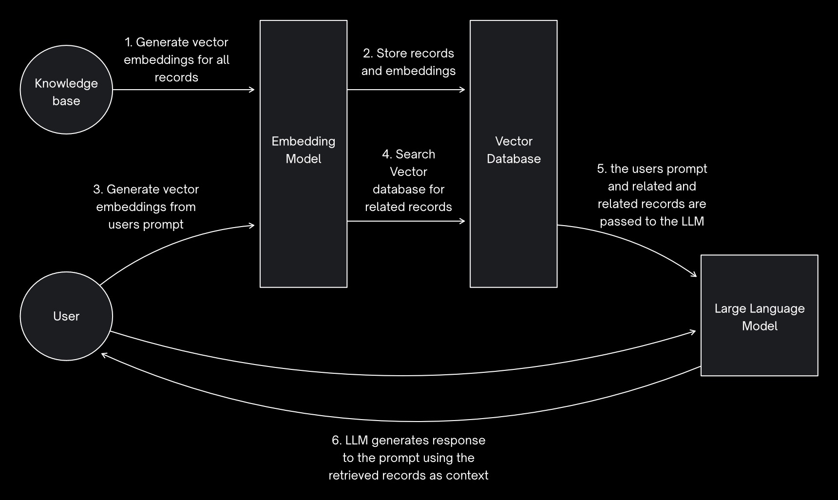 1. when a user enters their prompt, we vectorise the prompt using the API we built for vectorising a search query